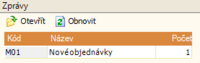 2. Při nově založené objednávce se zobrazí v seznamu zpráv počet