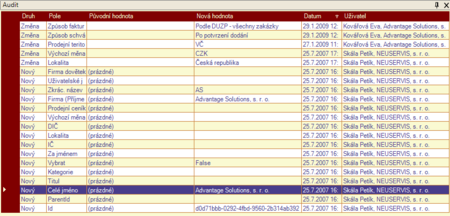 Primárně tedy slouží pro kontrolu v případě nějakých nepodložených změn. Tato funkce zobrazuje panel historii změn zobrazeného záznamu.